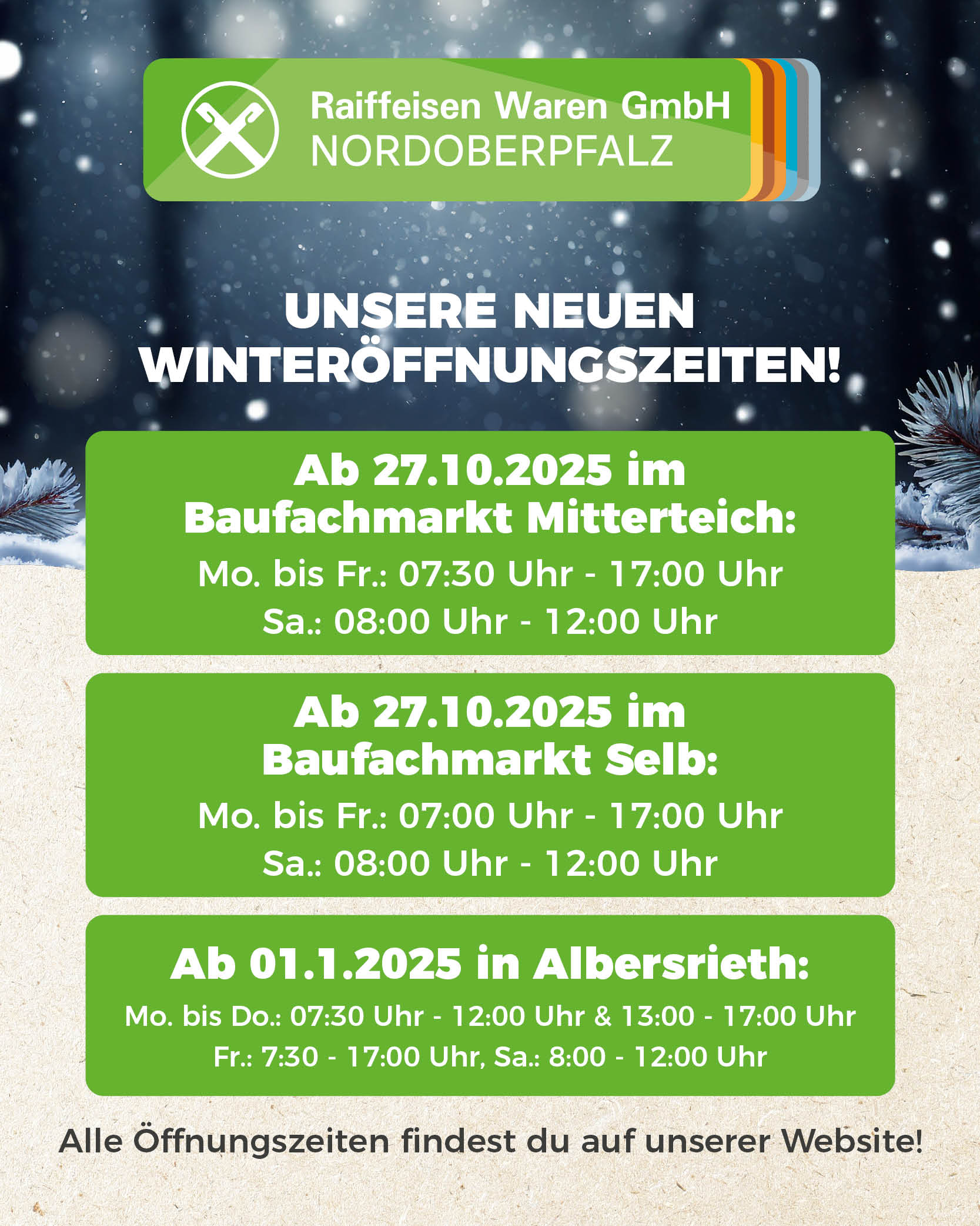 Unsere Winter-Öffnungszeiten